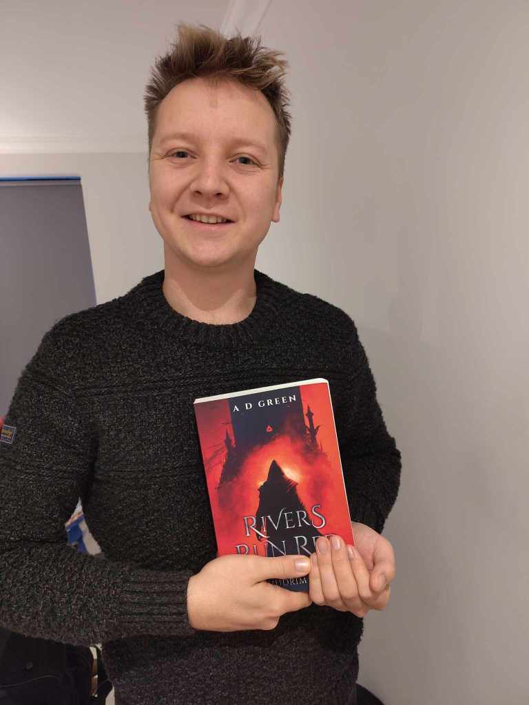 Congratulations Charlie, from York, UK. Charlie has opted for a paperback edition of Rivers Run Red and he sent me this picture of him clutching his prize and very kindly agreed for me to post it on this website.